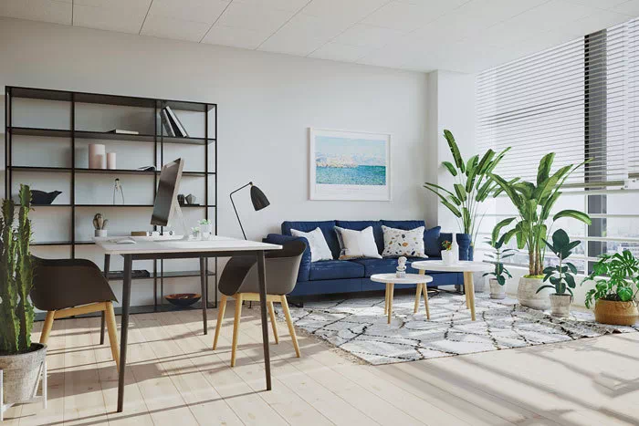 A: 在小办公室中,可以以白色为主调,因为白色能够反射所有的光线,给人一种干净而开阔的感觉。这样可以让空间显得更加宽敞明亮。