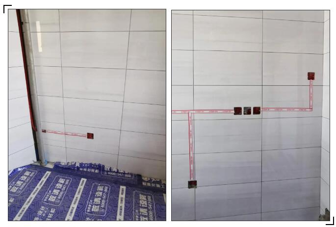 工程监理也进行了详细的检测,特别是地面找平工作,不放过任何一个细节。吊顶上方的水管线路排列整齐,瓷砖铺贴平整美观,红色电路标识清晰醒目。